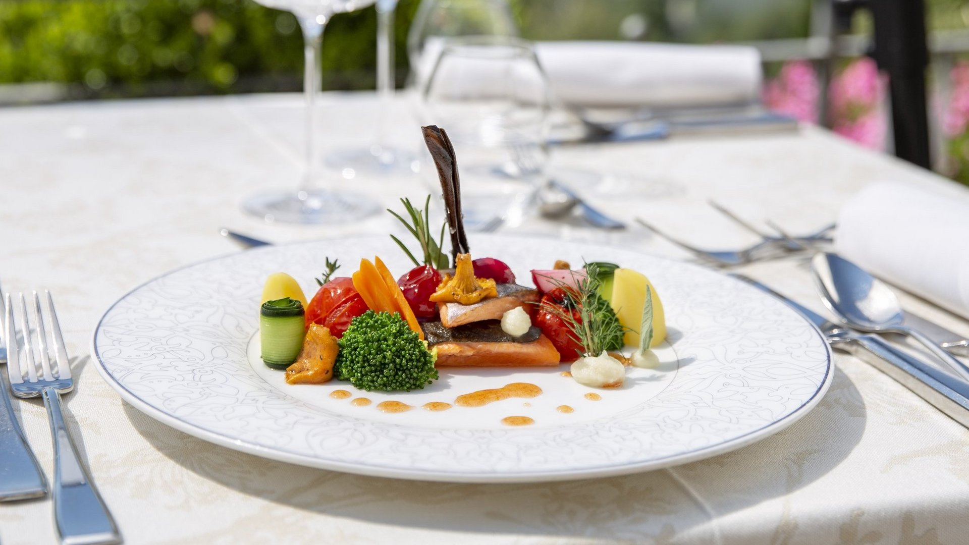Il gusto inizia già dalla colazione. Nel nostro hotel gourmet in Alto Adige iniziate la vostra giornata con un’abbondante colazione nella nostra soleggiata terrazza con vista sullo scenario alpino, con uova fresche dal Melcherhof, marmellate fatte in casa, miele dal Platterhof, formaggio e latticini dal Boarbichlhof, diversi tipi di frutta e tanto altro ancora. A pranzo, se lo desiderate, mangiate nel nostro ristorante à la carte. Nel pomeriggio lasciatevi tentare da dolci prelibatezze, come torte, frutta fresca, magnifici gelati e deliziosi spuntini. A sera, come coronamento della giornata, vi attendiamo nella suggestiva atmosfera del nostro hotel gourmet vicino Merano con menu a 5 portate con ingredienti freschi e regionali. Gli attenti collaboratori del nostro servizio tavoli e l’ambiente raffinato delle sale ristorante, come anche le terrazze panoramiche contribuiranno a un’esperienza sensoriale di puro gusto. Un hotel gourmet in Alto Adige come lo Schenna Resort è veramente unico nel suo genere!